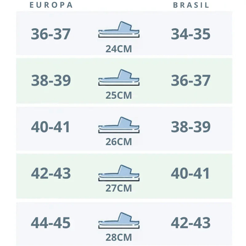 Com nosso avançado processo de fabricação de moldagem por injeção a baixa temperatura por exatos 400 segundos, temos uma base uniforme que, além de não se deformar com o tempo, molda-se perfeitamente aos seus pés, criando uma sensação de conforto nunca antes vista.