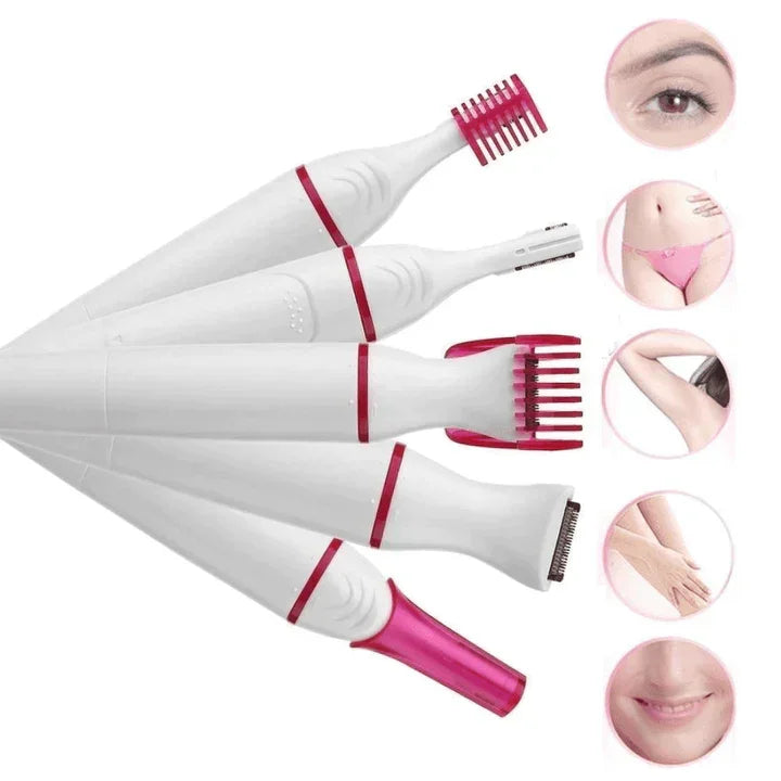 O Depilador Elétrico Feminino é multifuncional, pois acompanha 5 diferentes tipos de lâminas que removem os pelos de diversas partes do corpo.